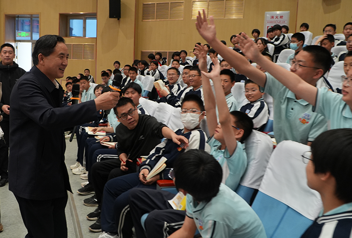 活动最后,叶茂老师为百余名学生签名赠书,寄语青少年“以书为舟,勇担使命”。