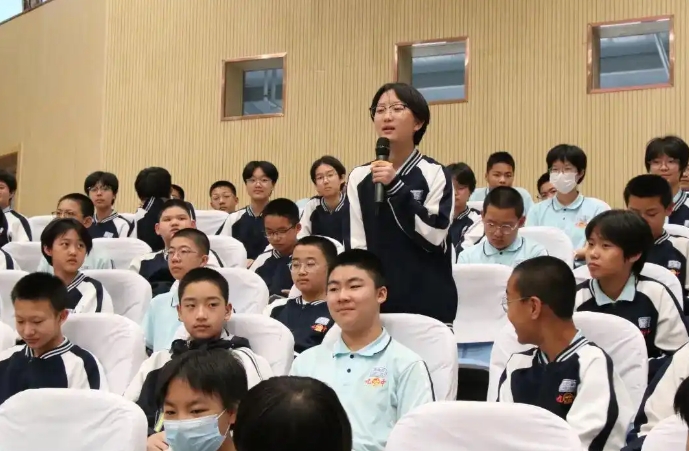 互动环节同学们纷纷举手提问,围绕“红色精神如何助力国防建设”“从五大书记求学经历中能获取哪些面对学习困难的启示”等话题,与叶茂老师展开热烈讨论。在这场思想的交流碰撞中,红色精神在代际之间传递,国防意识在同学们心中悄然扎根。